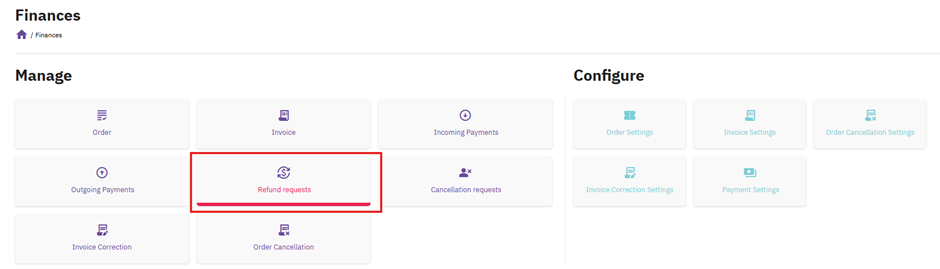 If you are cancelling tickets that have been paid in whole or in part, or you have received an Refund request email you will find that option in the Finances section, under the Refund Requests screen: