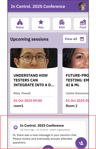 The run.events mobile app allows attendees to chat directly with event speakers. This feature empowers attendees to network, explore specific topics or areas of interest, and engage in meaningful conversations.