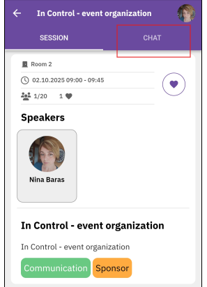 Tap the Chat button to join the session chat and start a conversation with its speaker.