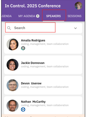 Alternatively, you can star a conversation with a speaker trough the Speaker tab. Use the Search option to find a Speaker by their name