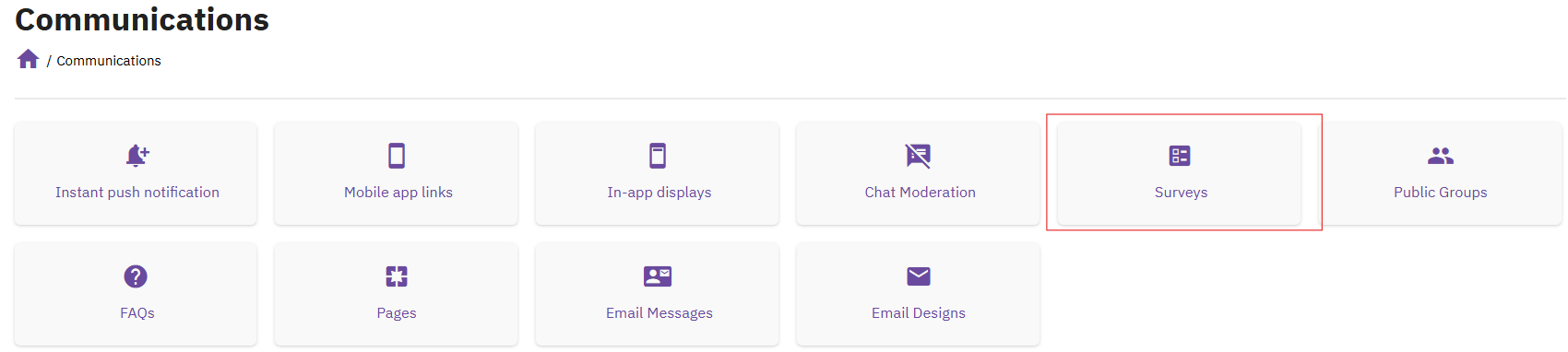 - Display of surveys in the app’s home feed