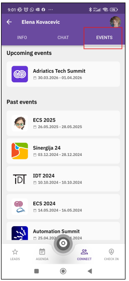 To find people, head to the Connect tab, where you’ll see options such as Chat, Connect, Groups, and Suggested – all designed to help you discover and interact with other attendees.