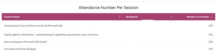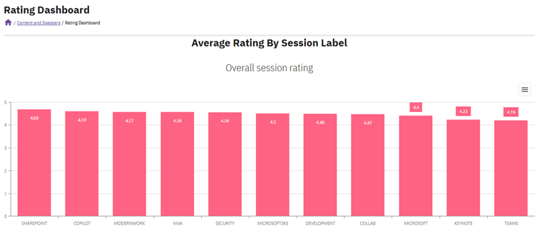 This dashboard helps you quickly assess session quality and identify trends in attendee satisfaction.