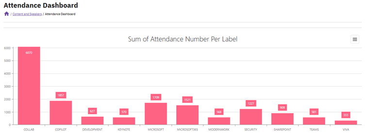 - The label graph counts speakers per label. Since a single speaker can hold multiple labels (e.g., "Microsoft" and "AI"), each label that speaker holds adds +1 to the corresponding pie chart value. This means totals across labels can exceed your total speaker count.