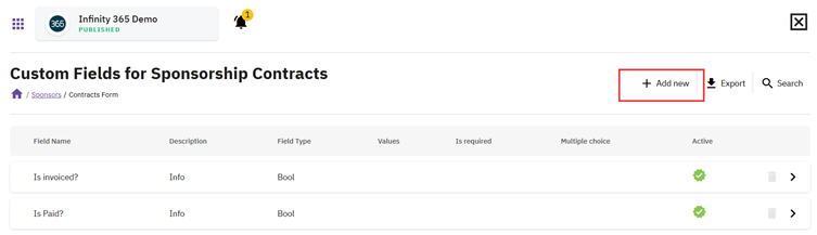 Custom Fields for Sponsorship Contracts