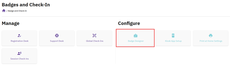 Go to: Badges and Check-In → Badge Designer
