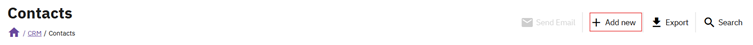 Click on +Add new to manually create a contact. Contacts can also be automatically imported trough event participation.