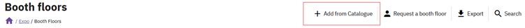 Add floors from the catalogue and customize their name, description, size, and price, or request a custom booth floor template as needed.