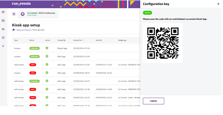 Scenario 2: Global check-in by scanning pre-printed badges with the run.events Access Control app: