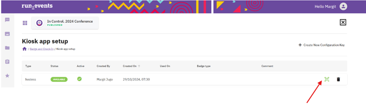 Once saved, your new configuration key will appear in the table on the Kiosk App Setup screen.