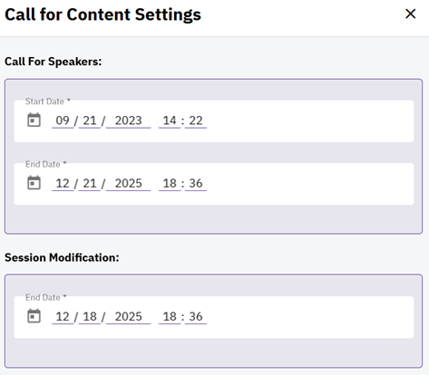 - Maximum Number of Sessions per Speaker – limits how many proposals each speaker can submit