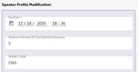 - Speaker Profile Modification Deadline – until when speakers may update their profiles