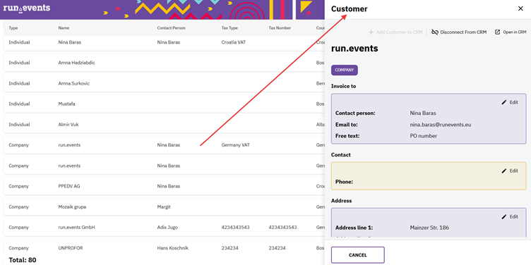 This editing option becomes available once the company/customer has purchased one or more tickets and their record is visible in the system.