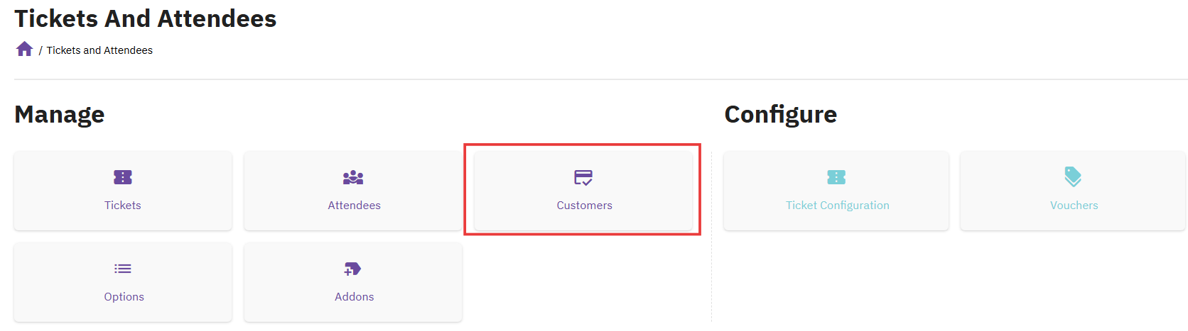 Go to Tickets & Attendees -> Customers -> select the Customer