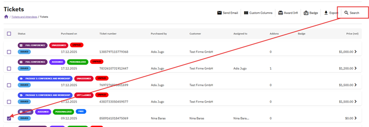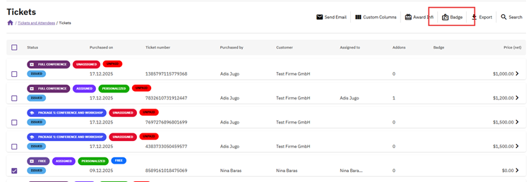 - Select and filter the attendees whose badges you want to pre-print