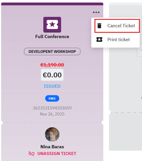 Through the Attendee Dashboard, attendees have additional ticket management options - including requesting a ticket cancellation and refund, if allowed by the event organizers’ terms and conditions.