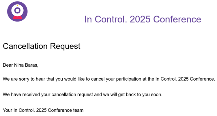 A confirmation email of the cancelation and/or refund approval will be sent to you, including an attached Invoice Correction document: