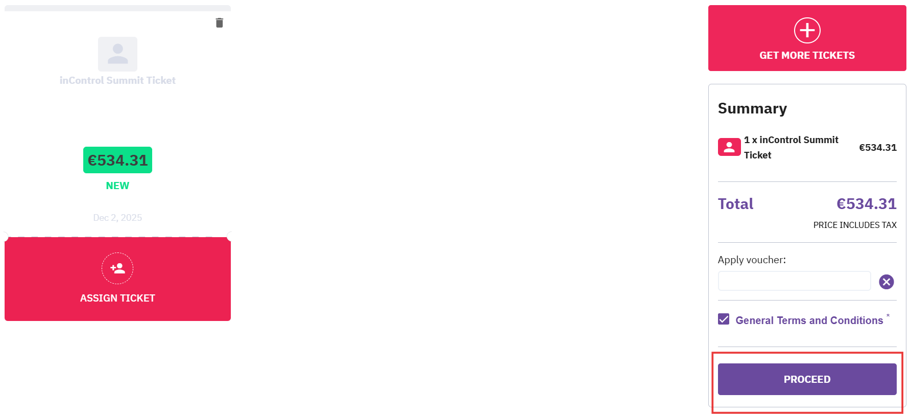 Once all fields are filled out, click Assign Ticket to link the ticket to your profile.