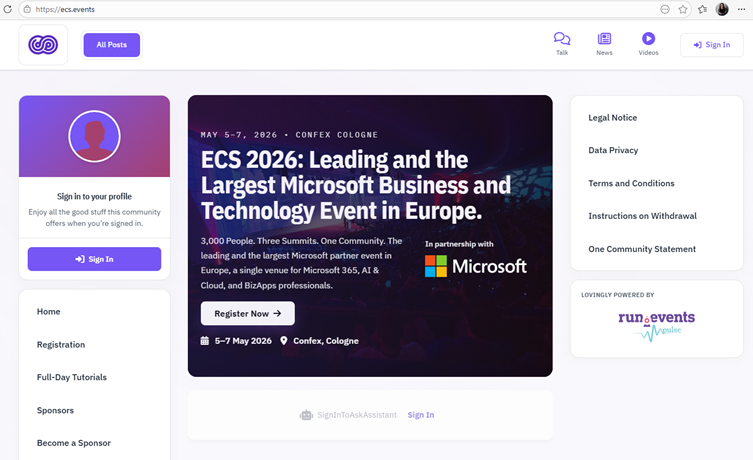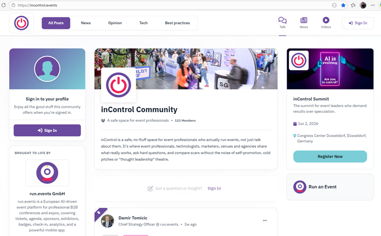 ●Event data (sessions, speakers, sponsors, agenda) is pulled directly from run.events — no duplication needed.