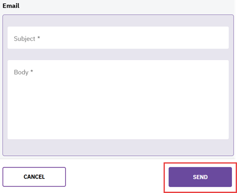 The email functionality is available throughout the platform, allowing you to communicate with different stakeholders directly from relevant sections.