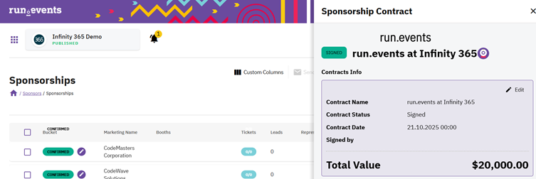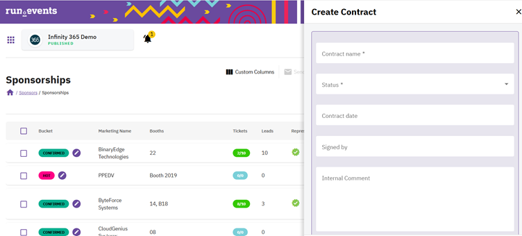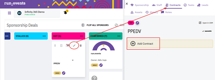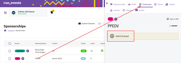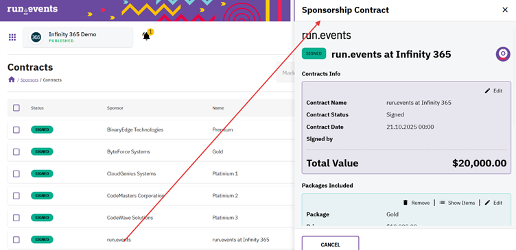 Go to: Event Level → Sponsors → Contracts