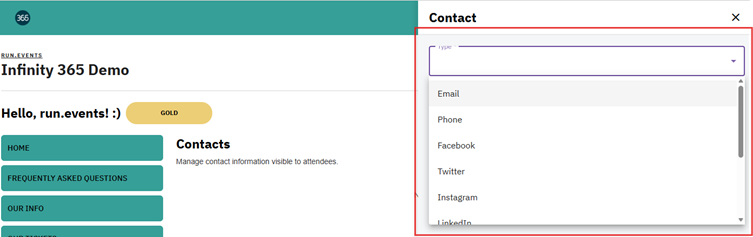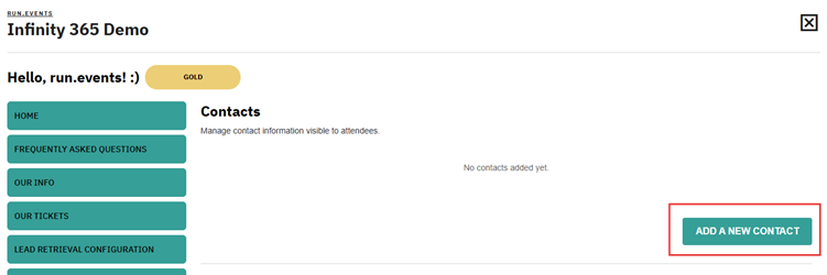 Contacts allow you to display key people attendees can reach out to. These appear on your sponsor profile and make it easy for attendees to connect with the right person on your team — whether that's sales, support, PR, or any other function. Multiple contacts can be added for different purposes, helping drive leads and networking opportunities throughout the event.