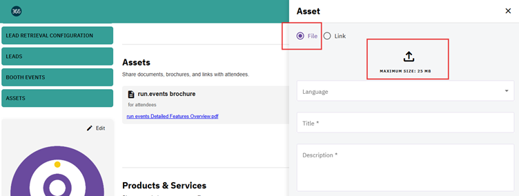 Assets allow you to share brochures, whitepapers, product sheets, pitch decks, or external links with attendees, making your marketing materials easily accessible directly from your sponsor profile. For events with international audiences, assets support multilingual content — you can upload or link separate materials for different languages. This gives attendees the opportunity to explore your company, products, and services both before and during the event.