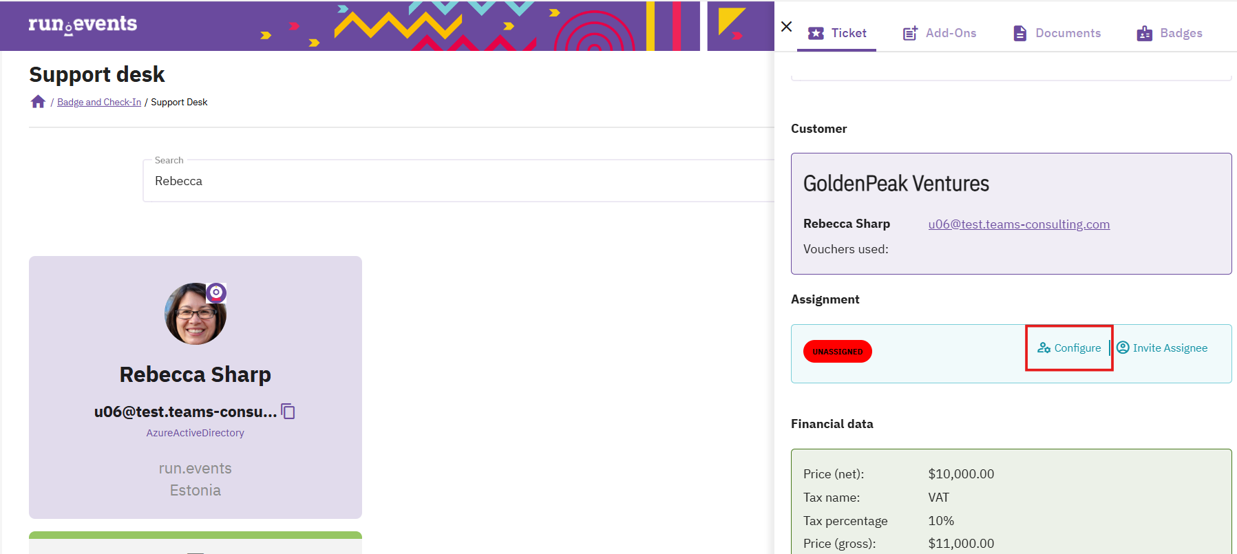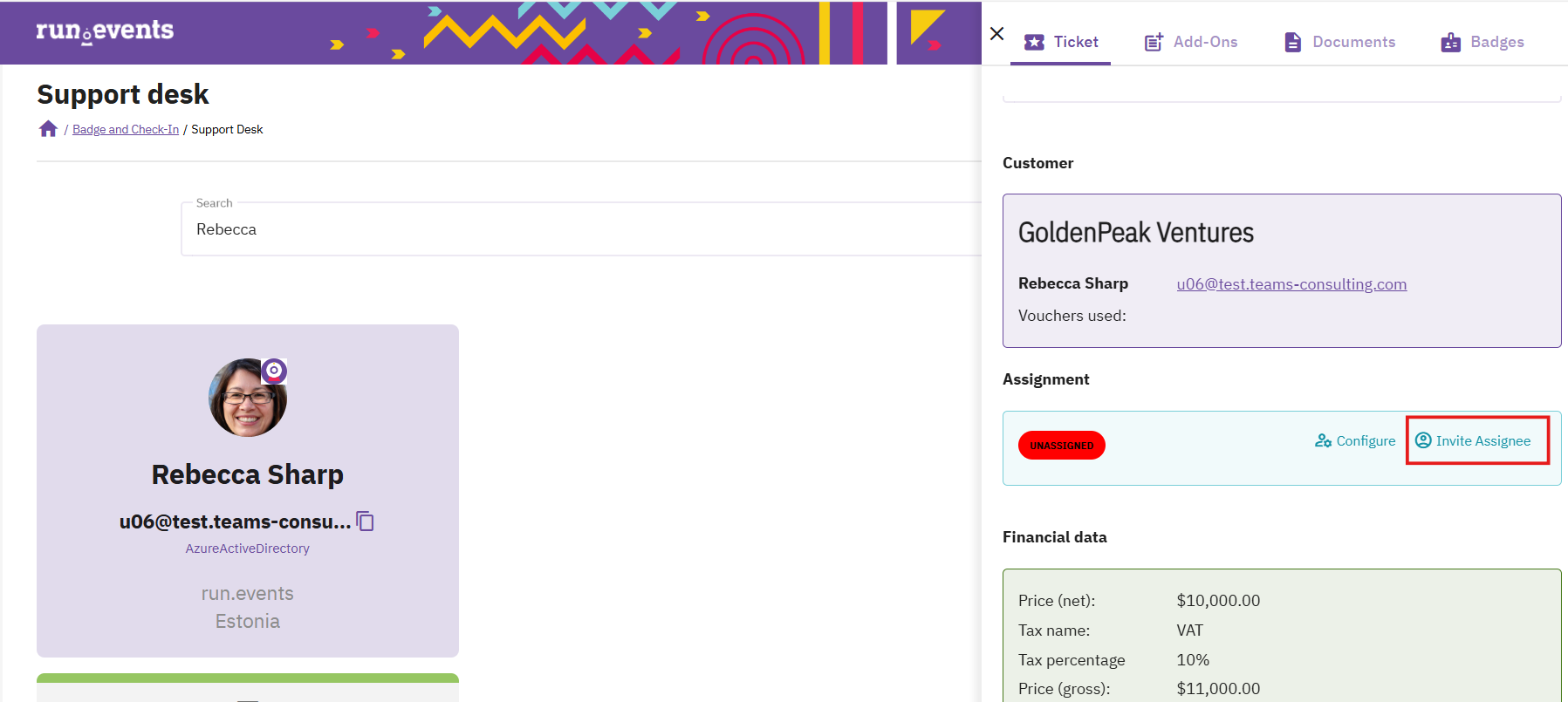 or use the option “Invite Assignee” to send the ticket to the attendee via email, so she/he can personalize the ticket: