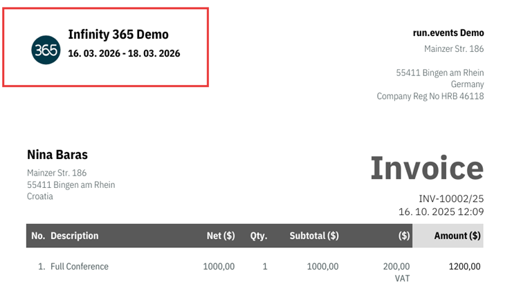 - Event logo appears on all invoice documents